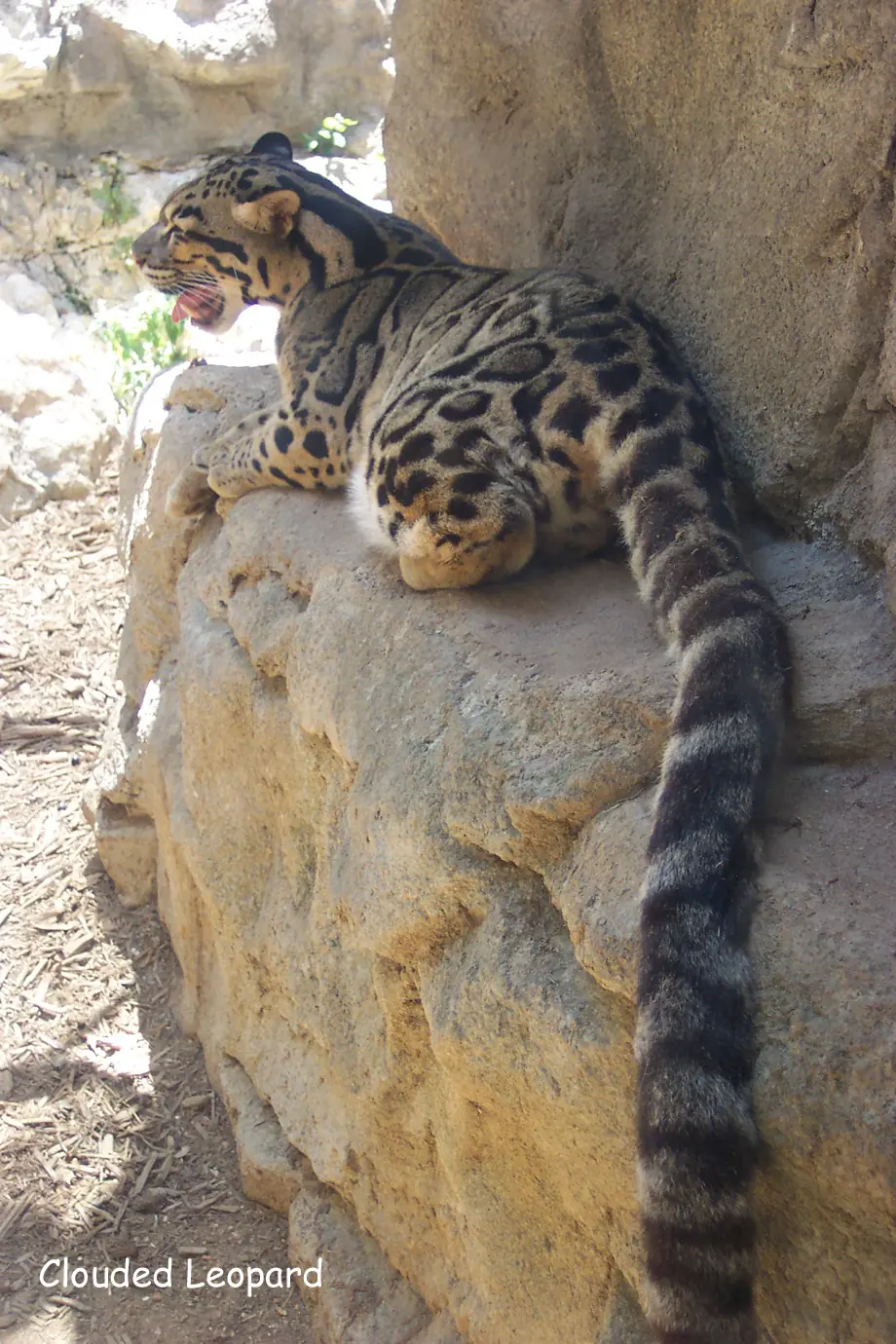 La pantera nebulosa o leopardo longibando (Neofelis nebulosa) es una de las dos especies de félidos pertenecientes al género Neofelis.Tiene una longitud de 60 a 110 cm y un peso de 11 a 20 kg las hembras, los machos hasta 65 kg. De hábitos arborícolas, esta especie es una excelente trepadora que se mueve ágilmente por las ramas gracias a su larga cola que actúa a modo de balancín. El pelaje está cubierto de grandes manchas irregulares de borde negro e interior pardo, lo que ayuda a la pantera nebulosa a confundirse entre las hojas. Su nombre procede precisamente de estas manchas, de forma parecida a una nube. En China se le conoce como leopardo de la menta, ya que las manchas también recuerdan a las hojas de esta planta.