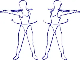 Lo que debéis hacer: De pie, un palo en las manos, brazos tensos delante de vosotros. Efectuad una rotación del busto del costado izquierdo. Regresad a la posición de salida y empezáis el movimiento de la parte derecha.