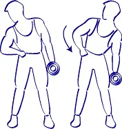 Haced lentamente este movimiento y regularmente y vos concentráis sobre los músculos que trabajan visualizándolo mentalmente. Si utilizáis un cargo importante, cuidad a controlar bien la bajada del brazo cuando la vuelta a la posición de salida para evitar los problemas de codo.