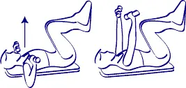 Precauciones: Si tendéis a cavar lo lumbares, bajo de la espalda, cruzad las piernas y las levantáis como sobre el bosquejo susodicho.