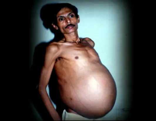 El estómago de Sanju Bhagat estaba tan hinchado que parecía un embarazo de nueve meses y apenas podía respirar. Vive en la ciudad de Nagpur, en la India, Bhagat decía que el tamaño de su vientre, le intimidaba. Pero una noche en junio de 1999, su problema pasó de ser algo estético a algo más serio. Mientras el médico inspeccionaba el cuerpo de Bhagat, vio algo que nunca había encontrado. Cortó más profundo en el estómago de Bhagat, los litros de líquido se derramaron hacia fuera – y entonces sucedió algo extraordinario. “Primero, salió un miembro, luego otro, unos órganos genitales, una parte del pelo, algunos miembros, entrañas, miembros, pelo.”A primera vista, podría parecer como si Bhagat hubiera dado a luz. Realmente, el médico había quitado el cuerpo del hermano gemelo de Bhagat de su estómago. Es una anormalidad extremadamente rara que ocurre cuando un feto queda atrapado dentro de su hermano. El feto atrapado puede sobrevivir como parásito incluso más allá del nacimiento formando una estructura umbilical que aprovecha de su fuente gemela hasta sangre, hasta que crece tan grande que comienza a dañar al anfitrión, generalmente este es el instante en el que interviene la medicina