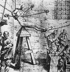 La victima era colocada desnuda y sometida a un estiramiento mientras su espalda era desgarrada por picos filosos. La victima era estirad ahasta 30cms que dislocaban y distendian las articulaciones de brazos y piernas, y dsmenbraban la columna vertebral, desgarrando musculos de extremidades torax y abdomen.
