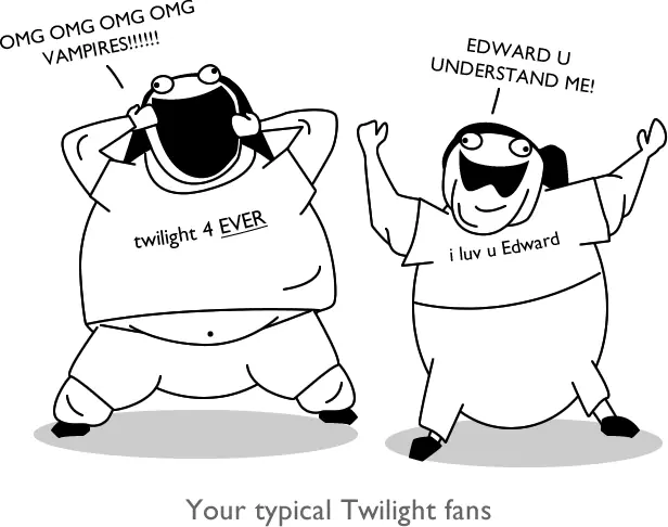Fans típicos de crepúsculo "oh por dios, oh por dios VAMPIROS!!!!" - "Edward vos me entendes!!!"