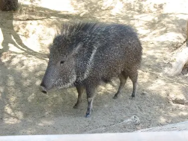 Características: Es el mayor de los chanchos silvestres. Su longitud total vara entre 1 m. y 1.22 m., correpondiendo a la cola unos 7 a 11 cm. En cuanto al peso ronda los 30 a 40 kg. La coloración es pardo grisácea. Sus orejas llegan a los 11 o 12 cm. de largo.