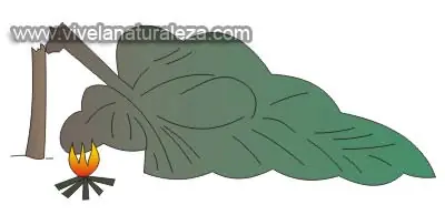 Hay que cortar algunas ramas para hacer una oquedad en la copa caída. Es un refugio acogedor y, si el árbol es frondoso, nos protegerá del viento, pero no de la lluvia.