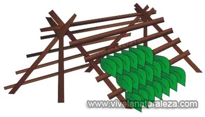 Es otro refugio clásico y que ofrece mayor abrigo que el cobertizo. Se construye con un armazón de palos que adoptan la forma de una tienda de campaña canadiense tradicional o de una A. Se cubre con una capa de hojas grandes a modo de tejas, y por encima de éstas una capa de hierba, hojarasca, ramas que no perforen las tejas para evitar que el viento nos levante el techo.