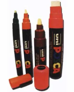 Con el tiempo los rotuladores caseros han dado paso a otros más sofisticados. Aparte de rotuladores de tinta aparecen rotuladores de témpera, con lo que ahora, aparte de haber más colores, los que hay son cubrientes, es decir, existen colores claros aptos para escribir en superficies oscuras, lo que hizo que se ampliasen el número de superficies susceptibles de ser atacadas. Generalmente se los llama Posca, debido a que la marca más extendida se llama así. Llevan un sistema de muelle y bola mezcladora debido a que los materiales que contiene son más espesos que la tinta y hay que asegurar la fluidez.
