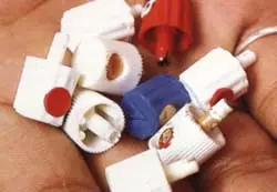 En cuanto a los difusores nos encontramos con dos tipos de boquillas o caps: Macho y hembra. Las primeras en la parte inferior tienen un tubito que entra en la válvula del bote hembra. Las segundas al contrario, tienen en la parte inferior un hueco en el que entra el tubo del bote macho. A su vez las boquillas, independientemente de que sean macho o hembra, tienen diferentes característica en cuanto al tipo de trazo que realicen (finos o gruesos, limpios o difusos, redondos o direccionables...). Nos encontramos entonces con los Fat cap (boquillas de trazo grueso) que sueltan más cantidad de pintura, son capaces de hacer un trazo con un grosor de 20 centímetros, por lo que son idóneos para rellenar grandes superficies. Por otro lado están los Skinny cap (boquillas de trazo fino) que sueltan menos cantidad de pintura permitiendo trazos de varios milímetros, ideales para detalles. Las skinny han pasado a sustituir el viejo truco de meter una aguja en el punto difusor para obstruirlo y reducir el grosor del trazo. Otro elemento diferenciador de boquillas es el hecho de que tengan falda (siendo más ancha y cómoda para el dedo) o no. Actualmente existen las llamadas crestas (boquillas con falda pero de cabeza estrecha)con una forma Hergonòmicaque se adapta perfectamente al dedo de su usuario.