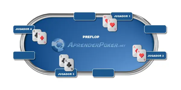 Con esas dos cartas ya en poder de todos los jugadores, se realiza la primera ronda de apuestas: el preflop.