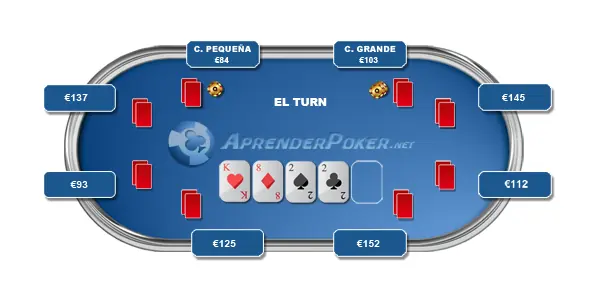 Una vez todos los jugadores han tenido la oportunidad de realizar una de las acciones después del flop, el croupier enseña una cuarta carta comunitaria: el turn.