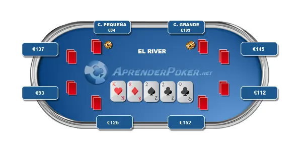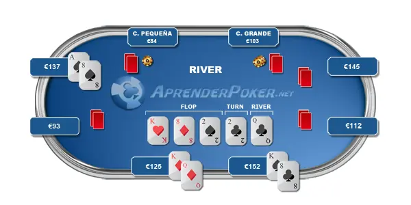 Los jugadores ya no podrán mejorar la jugada ya que ésta es la última de las cinco cartas comunitarias (siete cartas en total si incluimos las dos propias de cada jugador) con las que podrán formar la mejor combinación posible.