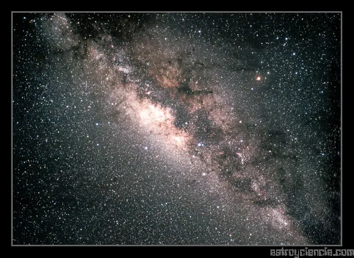 La Vía Láctea aparece más brillante en la dirección de la constelación de Sagitario, hacia el centro de la galaxia.
