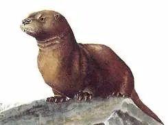Características: Nutria de tamaño inferior al metro cuando es adulta. El cráneo tiene un largo inferior a los 10 cm. Su largo total es de aproximadamente