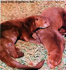 Características: Nutria de color pardo lustroso o brillante en las partes superiores y más claro llegando al gris ceniza en las inferiores, con la zona gular de color amarillento. Su largo total ronda el 1.20 m. en los adultos, y corresponde 70 cm. a la longitud de la cabeza y el cuerpo y unos 50 cm. a la cola que es larga y tubular. El peso se calcula en unos 8 Kg.