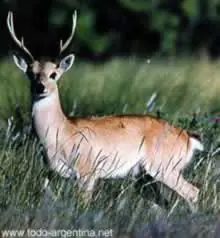 Características: Cérvido de tamaño mediano que alcanza una altura en cruz de aproximadamente 70 cm. En cuanto al peso se lo ha estimado entre os 30 y 40 kg. El pelaje es corto y liso y de una coloración bayo claro o crema muy claro.