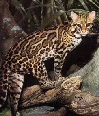 Situación: La caza constante con cepos o con la ayuda de jaurías y la transformación de los montes debidos al creciente desmonte y poblamiento humano han provocado en esta especie una notable disminución poblacional. Su aprecio en peletería le ha valido una especial demanda, ya que algunos consideran su piel la más hermosa entre los gatos manchados.