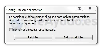 Botón Aceptar para salir del Msconfig y Windows nos avisara que tenemos que reiniciar.