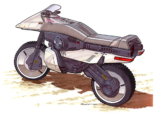 halcón Street fue diseñado originalmente por Andrew Probert . Su diseño se utilizó para crear la moto utilizada en el episodio piloto de EL CONDOR. A continuación se presentan dos de sus dibujos conceptuales del CONDOR. En la parte superior es la moto concepto original, y en el fondo es el diseño final de las revisiones de los productores.