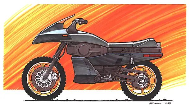 El primero fue utilizado solamente en el episodio piloto y no contenía el lanzador de misiles o ametralladoras. Esta fue la moto originalmente diseñada por Andrew Probert. Como nota interesante, la moto utilizada en el piloto fue construido por el mismo equipo que participó en la construcción de los coches Blade Runner y el Starfighter.