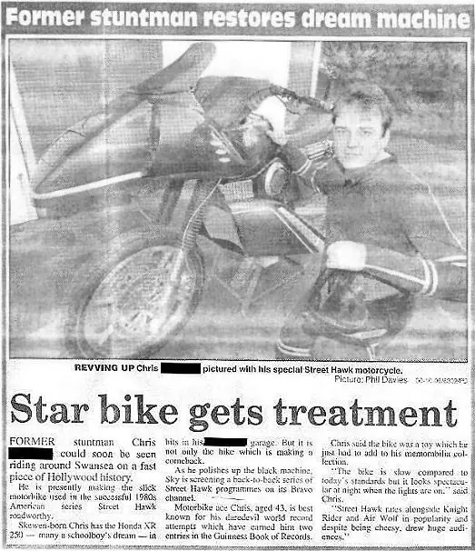 Aquí está un recorte de periódico de Gales sobre Chris Bromham, el actual propietario de una de las motos originales: