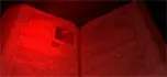 Se apagaron las luces y desde atrás, una figura que está reposada en un mueble, aparece una luz roja flotante que cruza la habitación y pasa por delante de ellos. Volvió la luz y sus cabellos estaban completamente erizados (en punta). Soltaron el libro y todo quedó ahi. Un susto.