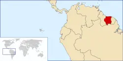 La República Cooperativa de Guyana, la más occidental de las Guayanas, es un país del norte de América del Sur. Limita al norte con el océano Atlántico, al este con Surinam, al oeste con Venezuela y al sur con Brasil. Las dos terceras partes del occidente del país son reclamadas por Venezuela, zona llamada por ésta como Guayana Esequiba; también su otro vecino, Surinam, reclama para sí una parte del territorio oriental.