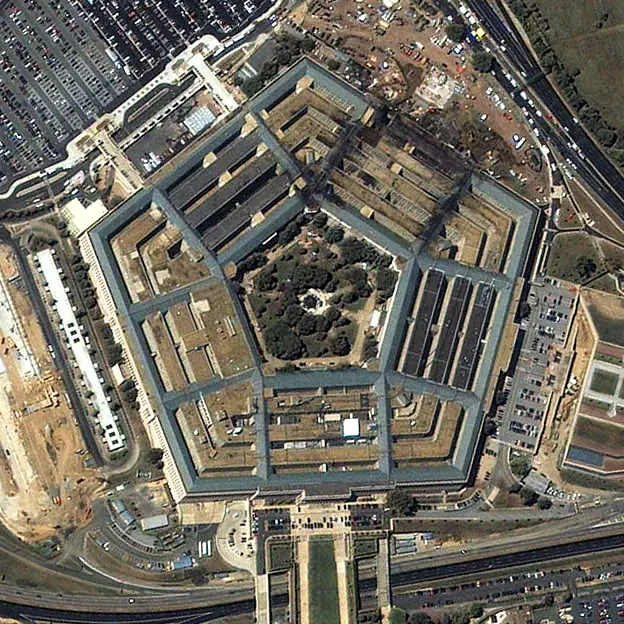 El pentagono fue la 3er zona afectada. No fue destruida por completo pero gran parte a causa de " UN AVION" que no dejo marcas en el suelo y casualmente no se encuentran los archivos de las camaras de seguridad que estan las 24 HS enfocando al pentagono