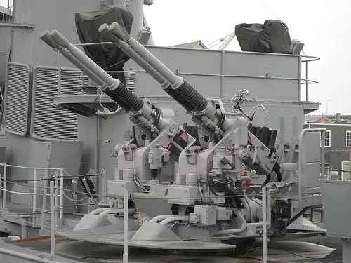 Los Iowa fueron diseñados para proteger a portaaviones de ataques aéreos, para esto se le colocaron 20 cañones de 127 mm ubicados en 10 montages gemelos, los cuales dan al Iowa una magnífica protección antiaérea.