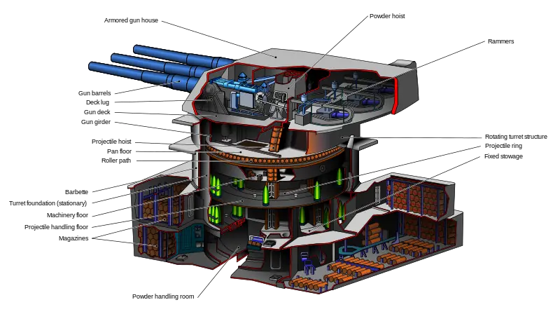 Los acorazados de la Clase Iowa poseen como armamento principal nueve cañones de 16/50 pulgadas (406 mm).