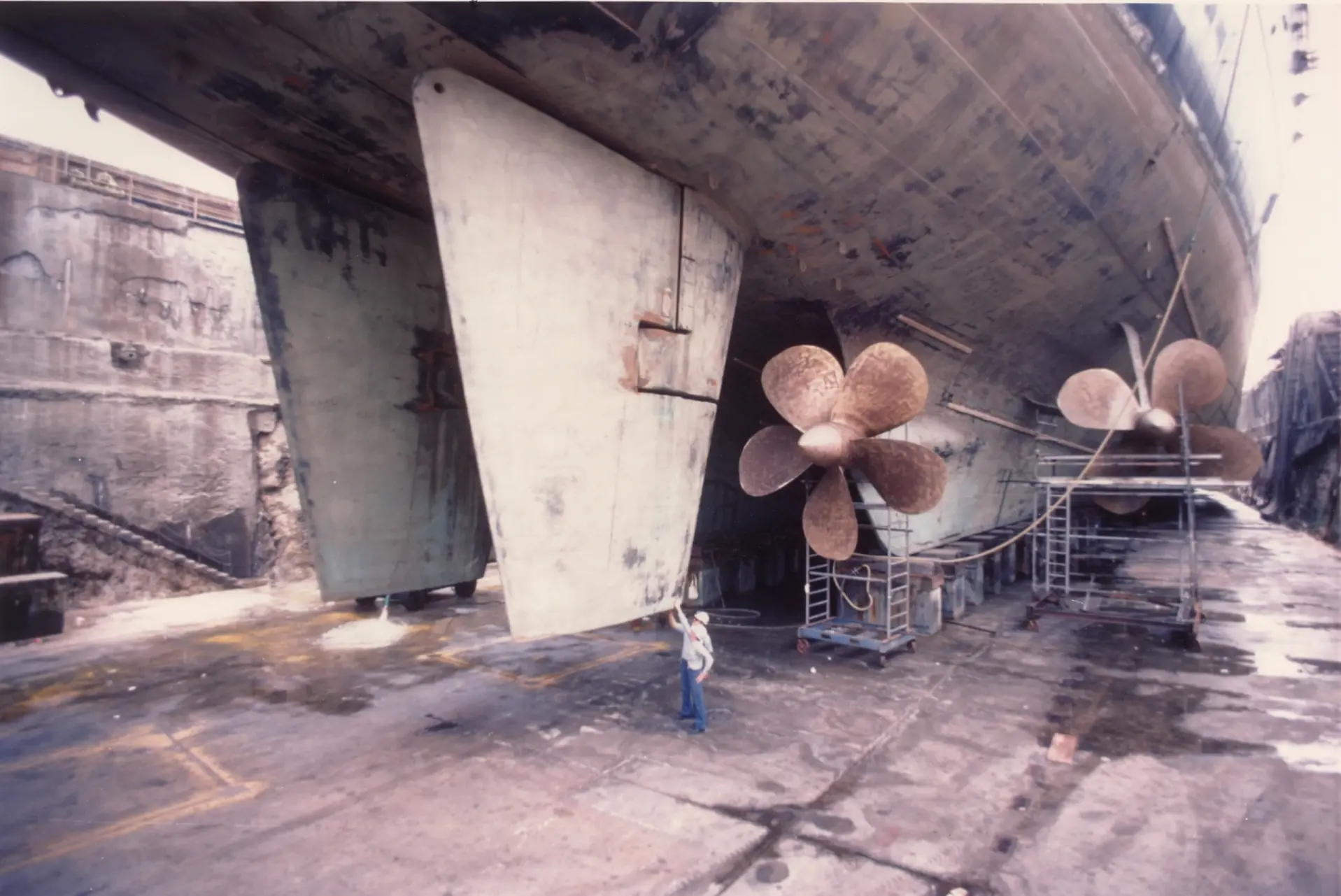 En la foto anterior aparece el doble timón y cuádruple hélice que le dan al los Clase Iowa su gran velocidad.