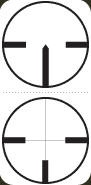 Los primeros rifles con visores de la historia utilizaban en su gran mayoría este tipo de retículas. Conocidas como Crosshair, presentan un diseño basado en una finísima línea horizontal y otra vertical que se cruzan justo en el centro. Este punto de cruce es el elemento en el que se debe fijar el tirador para efectuar su disparo. Hoy en día, las retículas Crosshair continúan gozando de gran popularidad gracias a su sencillez y versatilidad. Resulta muy adecuada para los visores con aumentos variables, mientras que su principal defecto es que no permite calcular las distancias.