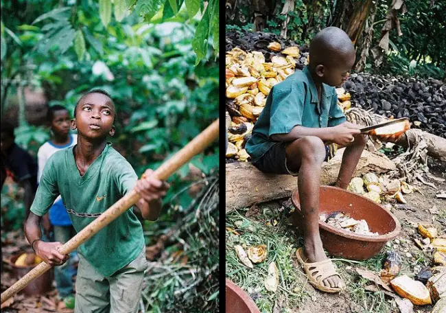 En el años 2000 informes de la administración norteamericana hablaban de más de 15.000 niños de entre 9 y 12 años vendidos como esclavos en las plantaciones de algodón, café y cacao de Costa de Marfil. Informes posteriores de la Organización Internacional del Trabajo (ILO) confirmaban el tráfico de niños entre productores africanos.
