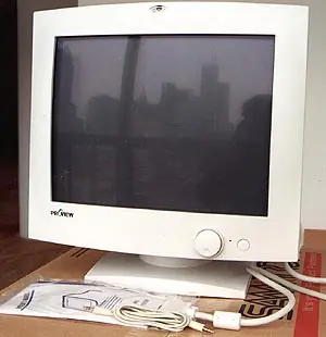 Con cajas laterales, con doble función (led verde y naranja) con C.I. generador de vidéo (OSD) montado en la placa del CRT.