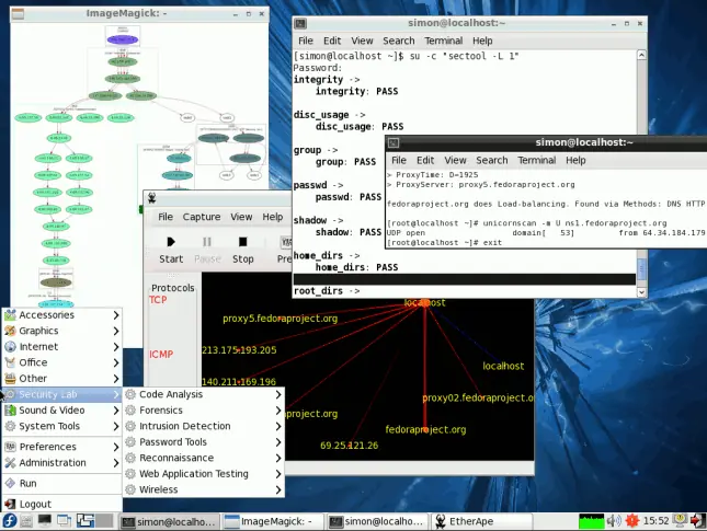 La Edición del laboratorio de seguridad de Fedora ofrece un entorno de prueba seguro para trabajar en auditorías de seguridad, forenses, rescate de sistemas, y enseñanza de diferentes metodologías para verificar la seguridad en universidades, o en otras organizaciones.