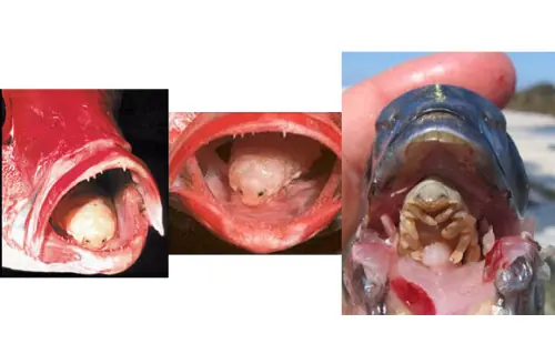 El Cymothoa Exigua es un parásito que se aloja en la lengua de un huésped, normalmente una especie de pargo (el pargo rojo normalmente).