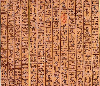 Encontramos textos grabados en las paredes de los lugares funerarios y de las estelas, inscritos dentro de los sarcófagos que contenían a las momias o sobre papiros. Los textos sagrados que se encontraban en las paredes interiores de las pirámides, eran textos que representaban encantamientos y fórmulas mágicas que debían guiar el viaje del faraón en el mundo subterráneo y ayudarle a purificarse con el fin de acceder a la vida eterna.
