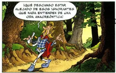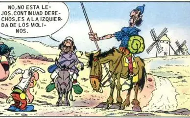 - En una de las viñetas de la aventura Astérix y Obélix se cruzan con Don Quijote y Sancho, protagonistas del segundo libro más veces impreso en el mundo (sólo detrás de 'La Biblia'). Al fondo los molinos de viento.