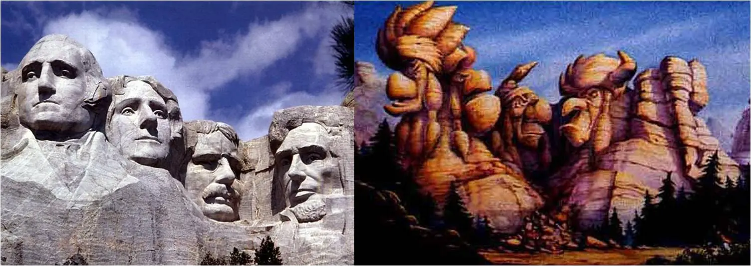 En el álbum se pueden ver esculpidos en una montaña los rostros de varios nativos norteamericanos que recuerdan al Monte Rushmore, una monumental escultura tallada en una montaña de granito situado en Keystone, Dakota del Sur, que conmemora el nacimiento, el crecimiento, la conservación y el desarrollo de los Estados Unidos de América.