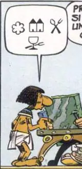 - Los jeroglíficos egipcios con los que se expresa 'Campodetenis' al alistarse en la aventura 'Astérix Legionario' son en realidad símbolos extraídos de la conocida guía Michelín.