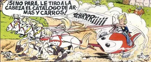 - En esta viñeta hay un claro mensaje en referencia a la revolución francesa y la guillotina (no tanto como anacronismo sino en clave de humor/guiño):