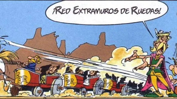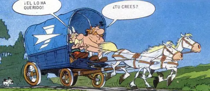 - Cuando Astérix y Obélix llegan a Divodorum, se hacen con un carro que lleva el símbolo de las oficinas francesas de Correos (PTT Postes, Telegrammes et Telephones):