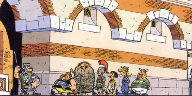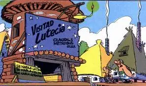 - En la versión original, el siguiente edificio llevaba el rótulo de 'Mola Rubra' (Molino rojo en latín), el célebre Moulin Rouge de París. En la siguiente viñeta aparece un perrito que podría haber inspirado a los autores a introducir el personaje de Idéfix en las aventuras.