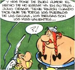 - Cuando los personajes van recorriendo la llanura, Abraracúrcix hace un comentario sobre el paisaje y Gueusealambix le responde: 'En esta tierra llana que es la mía, los 'oppidums' son las únicas montañas que tenemos'. Es una referencia a la canción 'Le Plat Pays' del cantante belga Jacques Brel la cual dice: 'avec des cathédrales pour uniques montagnes... le Plat Pays, qui est le mien'. Se entrecomilla 'oppidums' porque el plural de oppidum es oppida y no oppidums.