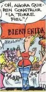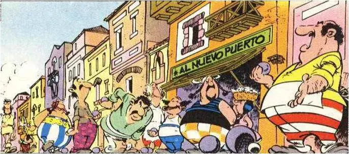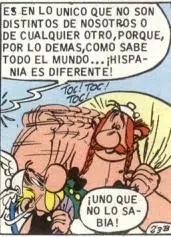 - En una de las viñetas de la aventura se hace referencia a la conocida frase 'Spain is different', relacionada sobretodo con el turismo de nuestro país. También en este caso se da con la llegada de turistas galos a Hispania en busca de sol asegurado y de unos precios bajos con el cambio de moneda: