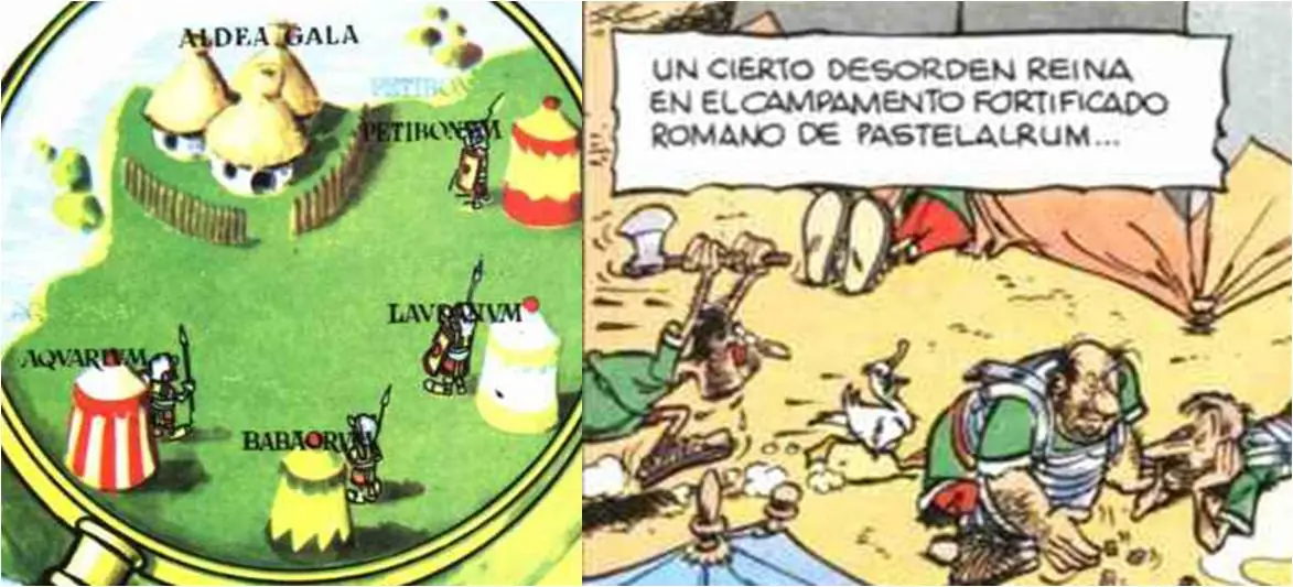 - Se vuelve a llamar Pastelalrum al campamento romano que en la hoja común de presentación de los álbumes se denomina Babaorum (recordemos que el baba es un tipo de pastel cuya masa está generalmente bañada en ron).