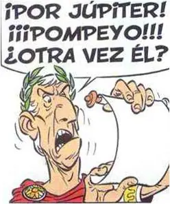 - En esta historia existe una cierta ambigüedad sobre el personaje llamado 'Pompeyo' ya que, aunque el lector pueda tender a identificarle con 'Pompeyo el Grande', esta identidad no es manifiesta en el guión de Uderzo. De hecho, sólo se indica que el tal Pompeyo es un cónsul expulsado del Senado por César, que tiene tropas bajo su mando, y que al final de la historia será enviado a África. Por otra parte, 'Pompeyo el Grande' era mayor que César y, sin embargo, el Pompeyo del cómic parece más joven. Esta ambigüedad, permite a Uderzo salvar el orden cronológico de los álbumes ya que en 'Astérix legionario' pudimos asistir a la batalla de Tapso (ver entrada 'Thapsus') y por ese entonces (46 a. C.), Pompeyo el Grande ya había fallecido.