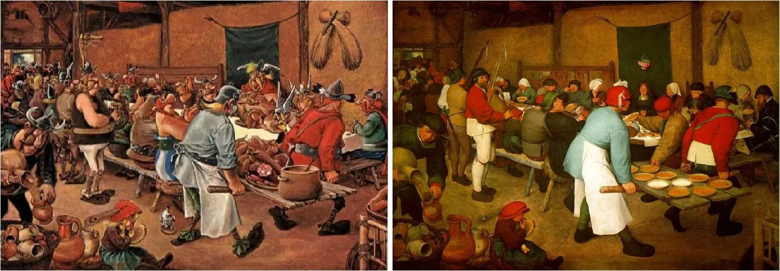 En lo que se refiere al pintor flamenco Peter Brueghel el Viejo, encontramos una esplendida interpretación de su obra 'Boda campesina'.