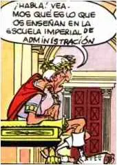 - La referencia de César a que Cayo Coyuntural ha estudiado en la 'Escuela Imperial de Administración', es una alusión a que Jacques Chirac se formó en la 'Escuela Nacional de Administración' (ÉNA), una institución francesa que tiene como misión aportar a los futuros miembros del alto funcionariado una formación interministerial.