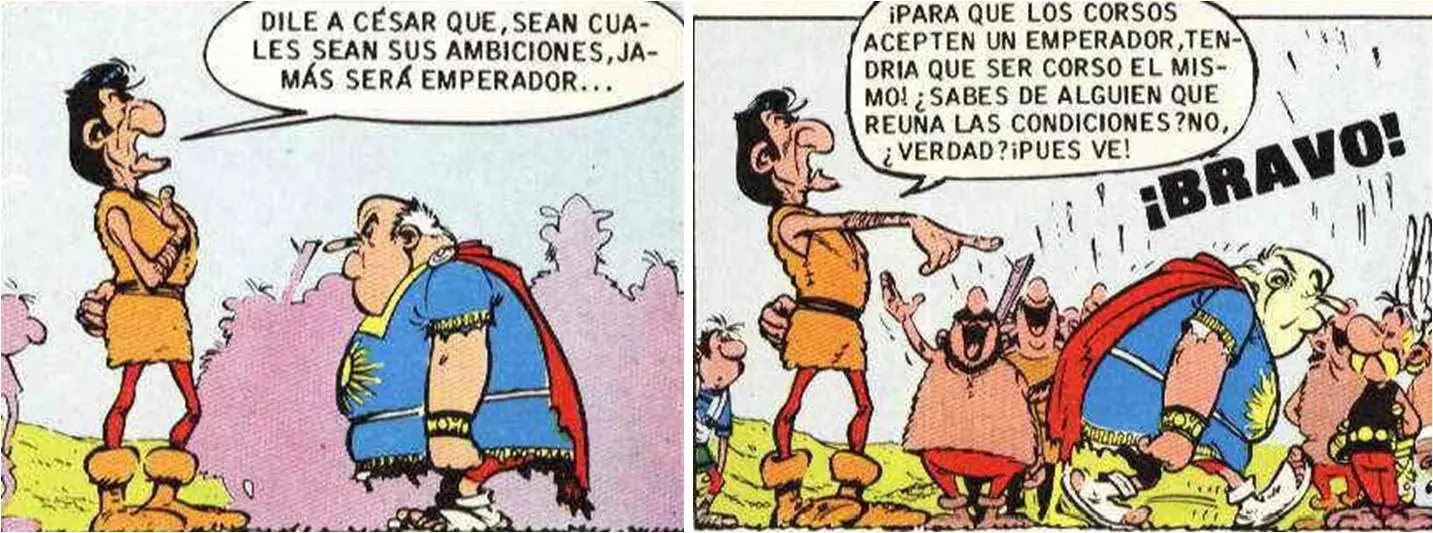 - Al inicio del álbum se sustituye el mapa tradicional que muestra la ubicación de la aldea gala en Armórica rodeada de campamentos fortificados romanos por un mapa de Córcega, también rodeada de guarniciones romanas.