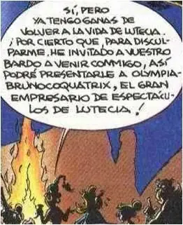 - Magistra comenta en el banquete final que quisiera presentar a Asurancetúrix a un gran empresario de espectáculos de Lutecia llamado Olympiabrunocoquatrix que no es otra cosa que la unión de Olympia + Bruno Coquatrix.